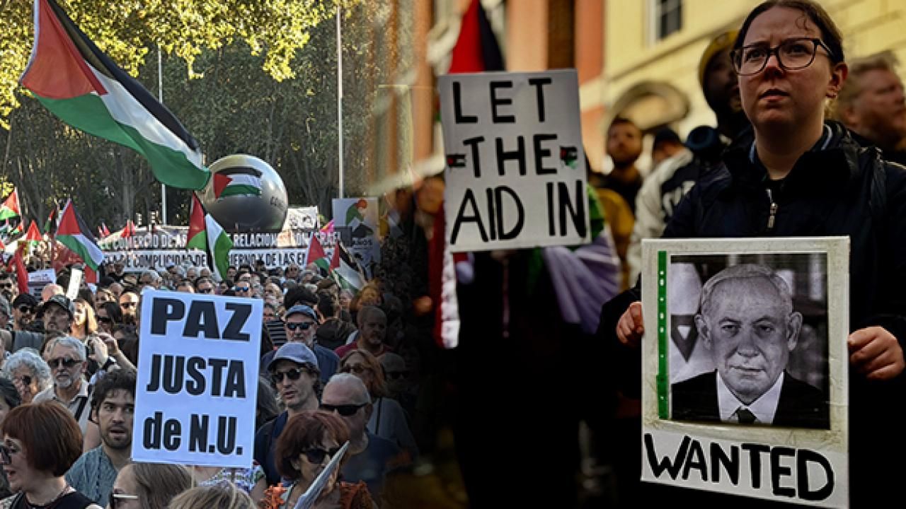 İsrail'in Küresel Sumud Filosu'na saldırısı sonrasında dünyanın dört bir yanında artan İsrail karşıtı gösteriler, Avrupa'nın birçok şehrinde devam ediyor.