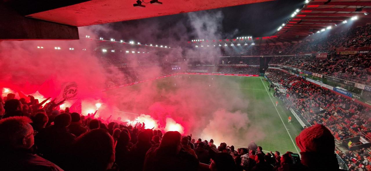 Karşılaşmanın ikinci yarısında bir taraftarın sahaya bardak fırlatması üzerine hakem oyunu durdurdu. Kısa süreli gerginliğin ardından taraftarlar duruma isyan edince gerginlik büyümeye başladı ve güvenlik güçleri de olaya müdahale etti.