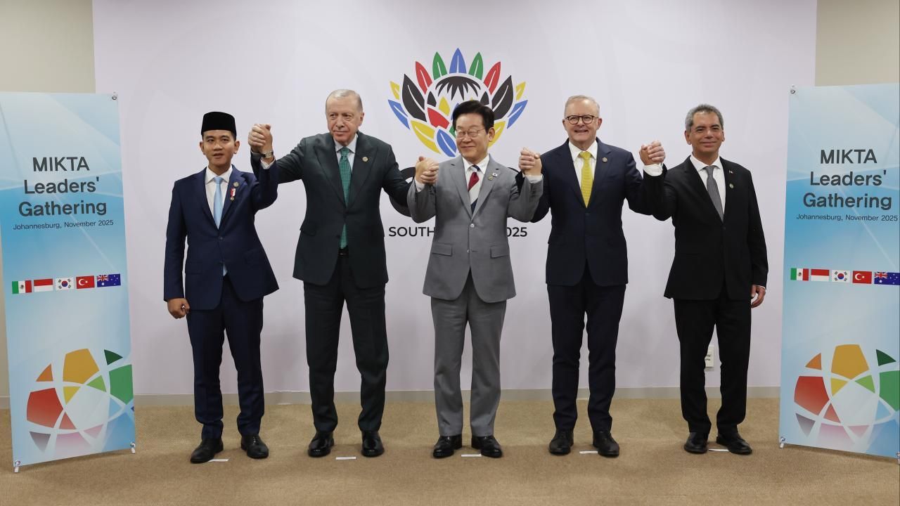 Cumhurbaşkanı Erdoğan, G20 Liderler Zirvesi için bulunduğu Güney Afrika Cumhuriyeti'nin Johannesburg kentinde Meksika, Endonezya, Güney Kore, Türkiye ve Avustralya arasındaki gayriresmi istişare ve eş güdüm platformu MIKTA'nın liderleriyle bir araya geldi.