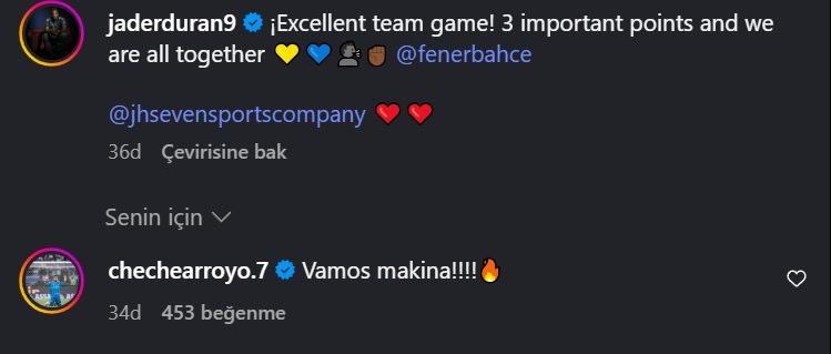 Jhon Duran'ın Instagram gönderisine yorum atan Arroyo, 'Vamos makina!!!' yazdı.