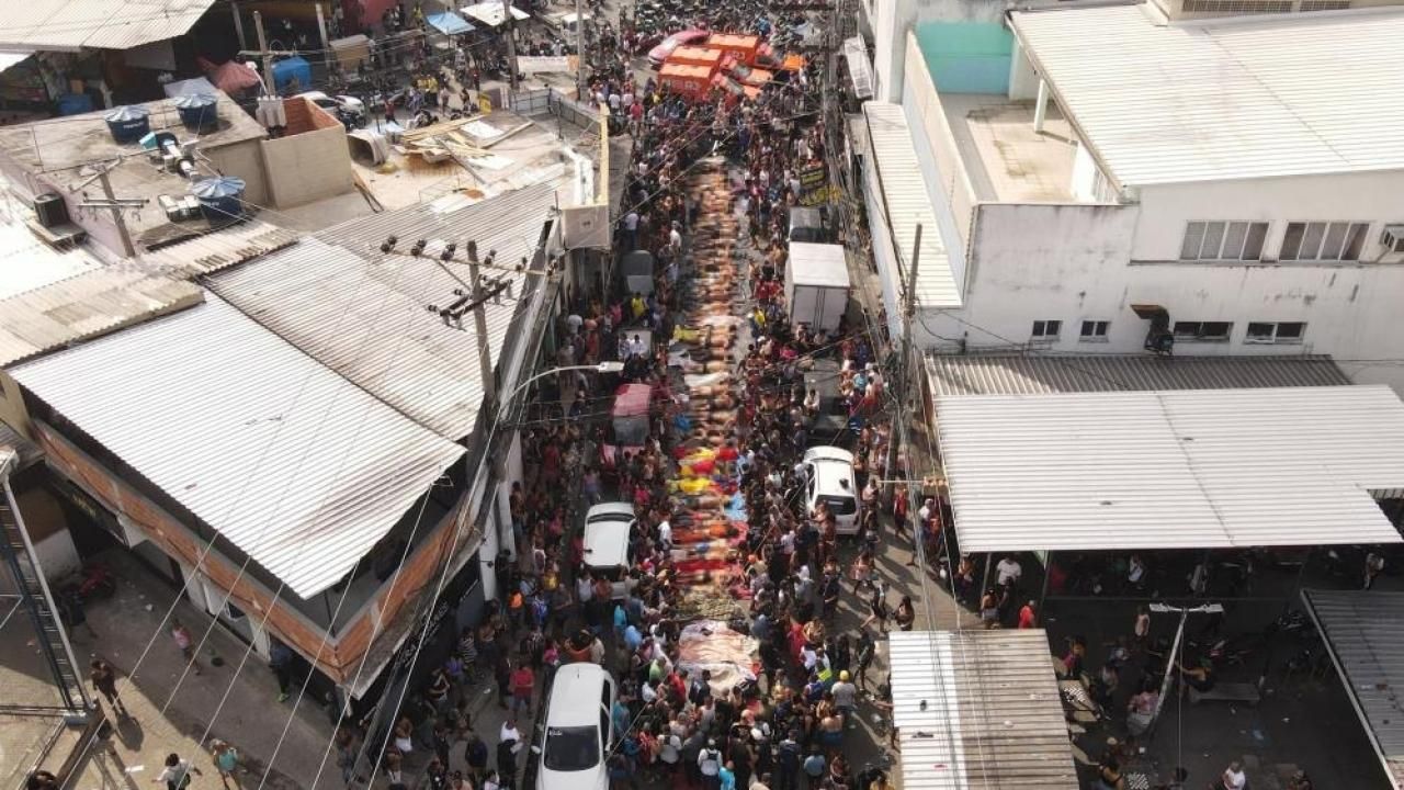 Brezilya'da polisin 28 Ekim tarihinde uyuşturucu çetelerine karşı yürüttüğü kapsamlı operasyondaki can kaybı yükselmeye devam ediyor. Rio de Janeiro polisi, 'favela' adlı gecekondu mahallelerine düzenlenen operasyondaki can kaybının 4'ü polis 132'ye yükseldiğini açıkladı. Rio halkı, gece boyunca cesetleri şehirdeki Penha Meydanı'nda toplarken, bazı öfkeli Brezilyalılar ise polisi toplu infaz gerçekleştirmekle suçladı.