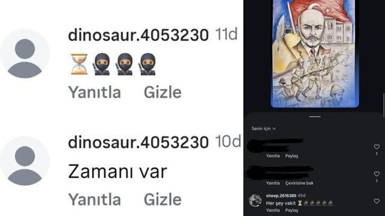 Çanakkale'nin Gelibolu ilçesinde yaşayan 20 yaşındaki Ü.B., Çan'daki bir lisenin sosyal medya hesabına 'her şey vakit' yorumunu sheep.2616389 kullanıcı adıyla yaptı. Aynı kişi, Gelibolu ilçesindeki bir yerel haber sayfasına da dinosaur.4053230 kullanıcı adıyla 'Zamanı var' yorumunu ekledi.