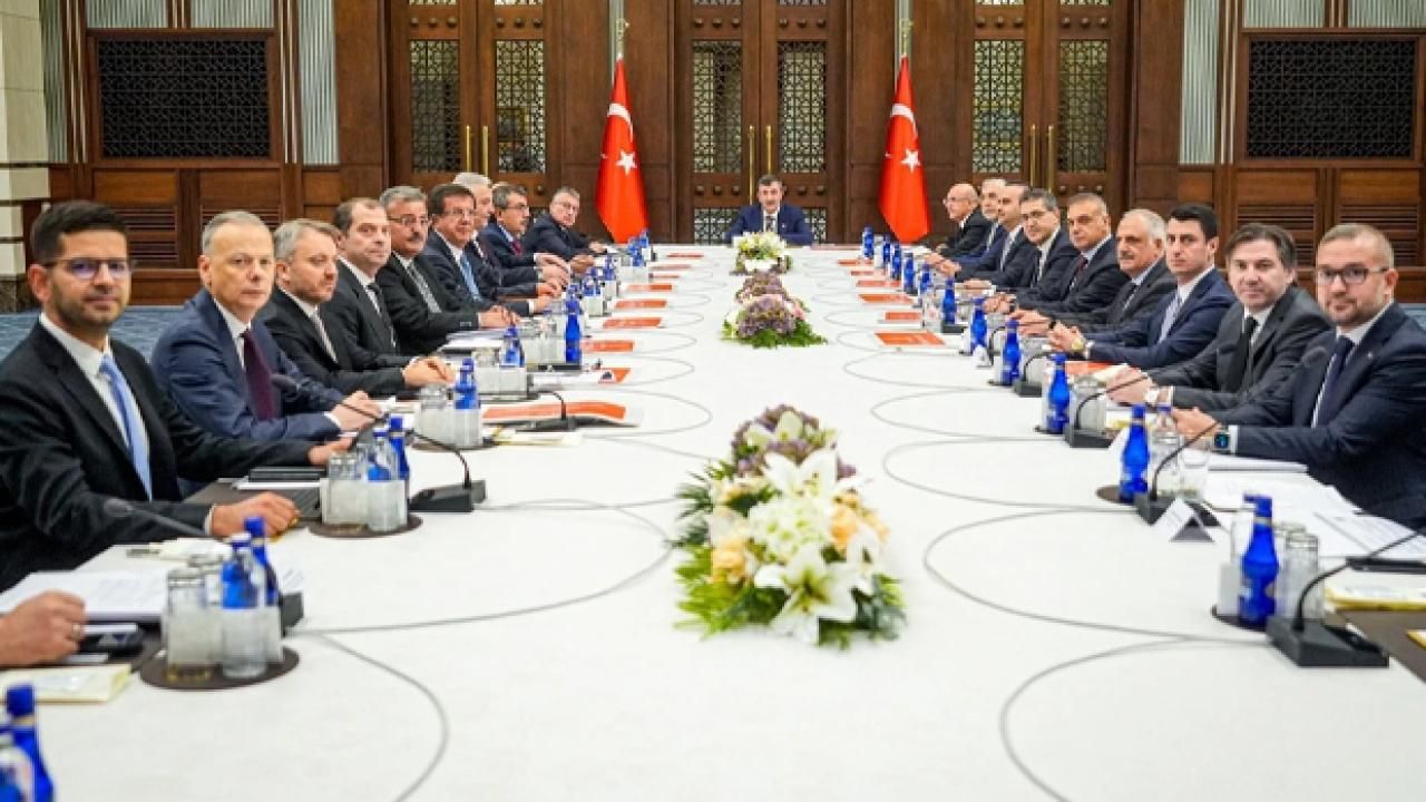 Ekonomi Koordinasyon Kurulu (EKK), Cumhurbaşkanı Yardımcısı Cevdet Yılmaz başkanlığında toplandı. Cumhurbaşkanlığı Külliyesi'ndeki toplantıya, Hazine ve Maliye Bakanı Mehmet Şimşek, Çalışma ve Sosyal Güvenlik Bakanı Vedat Işıkhan, Sanayi ve Teknoloji Bakanı Mehmet Fatih Kacır, Ticaret Bakanı Ömer Bolat, AK Parti Grup Başkanı Abdullah Güler, AK Parti Genel Başkanvekili Efkan Ala, AK Parti Genel Başkan Yardımcısı Nihat Zeybekci, Cumhurbaşkanlığı Strateji ve Bütçe Başkanı İbrahim Şenel, Türkiye Cumhuriyet Merkez Bankası (TCMB) Başkanı Fatih Karahan, Cumhurbaşkanlığı Yatırım ve Finans Ofisi Başkanı Ahmet Burak Dağlıoğlu, Çevre, Şehircilik ve İklim Değişikliği Bakanlığı İklim Değişikliği Başkanı Halil Hasar ve bazı bakan yardımcıları ile ilgili kurum ve kuruluşların temsilcileri katıldı.
