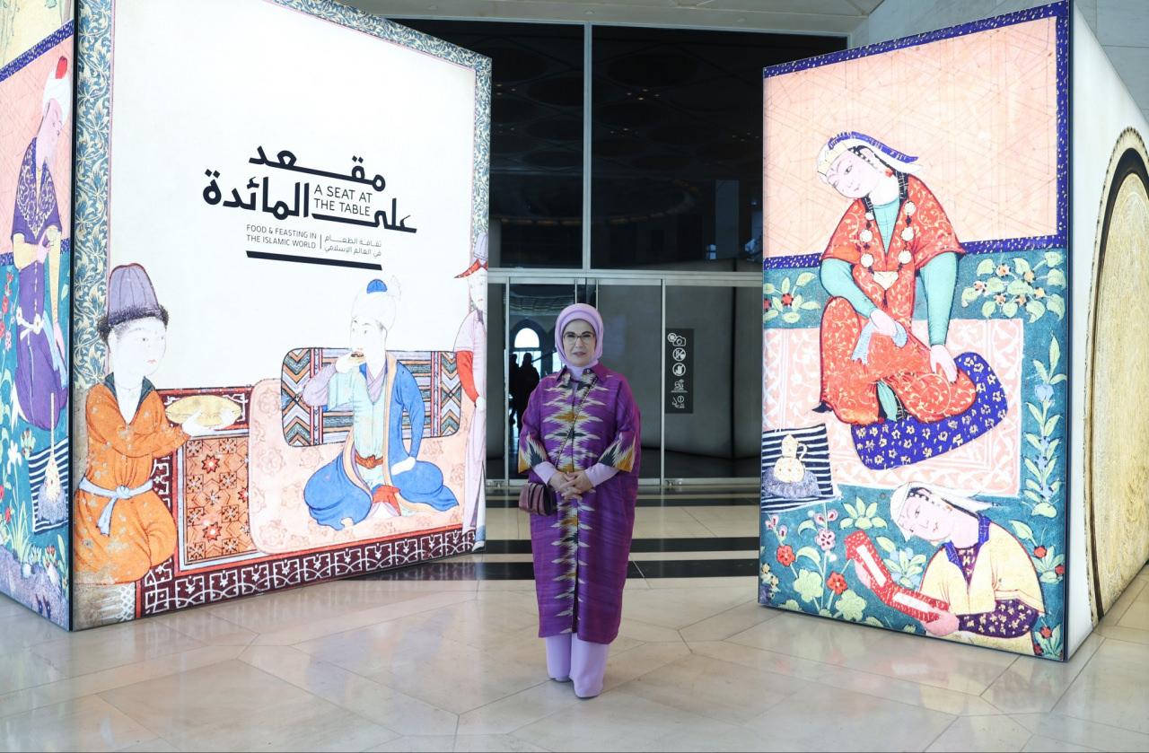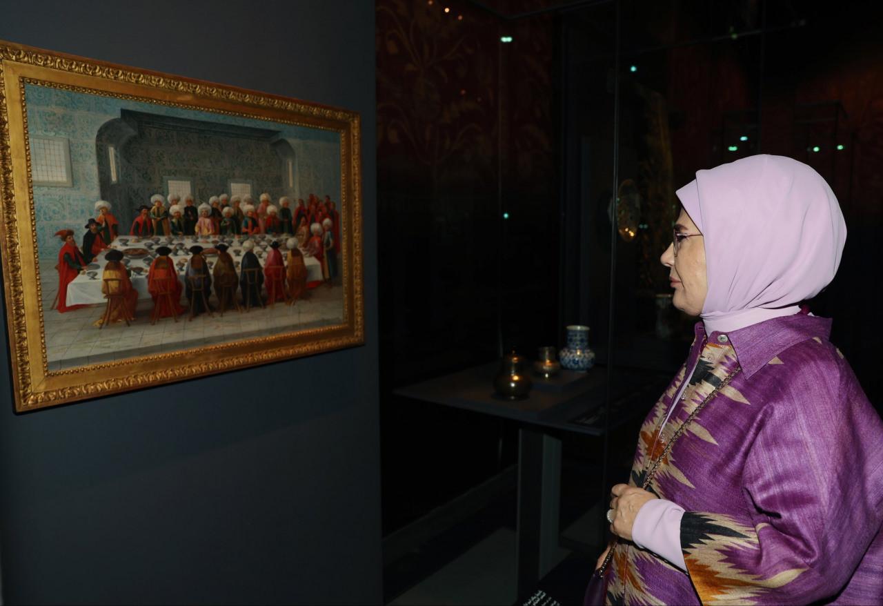 Müzedeki 'Masada Bir Yer: İslam Dünyasında Sofra, Yemek ve Ziyafet Geleneği' sergisini gezen Emine Erdoğan, eserler hakkında bilgi aldı.