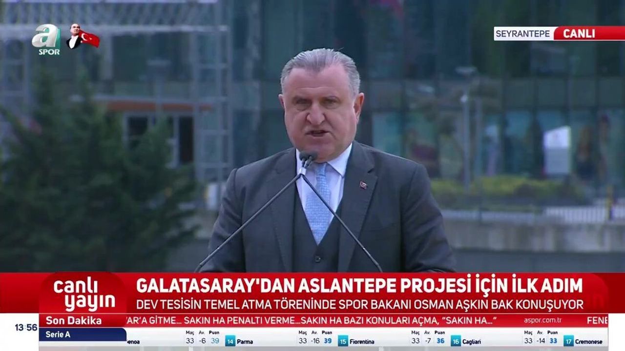 Gençlik ve Spor Bakanı Osman Aşkın Bak, Galatasaray'ın Aslantepe'de hayata geçirdiği projeye ilişkin değerlendirmelerde bulundu. Bakan Bak, bu yeni tesislerin kulübün başarısına önemli katkılar sağlayacağına inandığını belirtti.