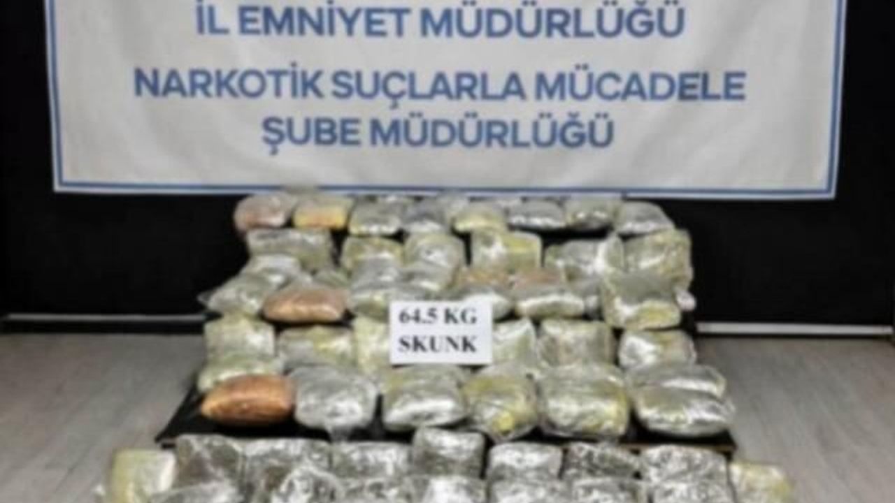Aramada, şüphelilere ait ikamette 64,5 kilogram skunk maddesi ele geçirildi. Operasyon kapsamında 4 şüpheli gözaltına alınarak adli işlemlere başlandı.