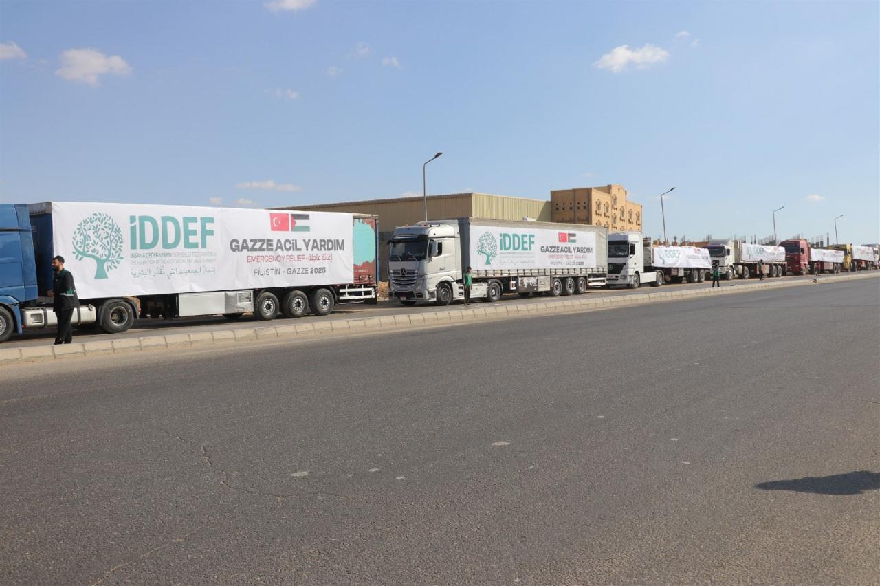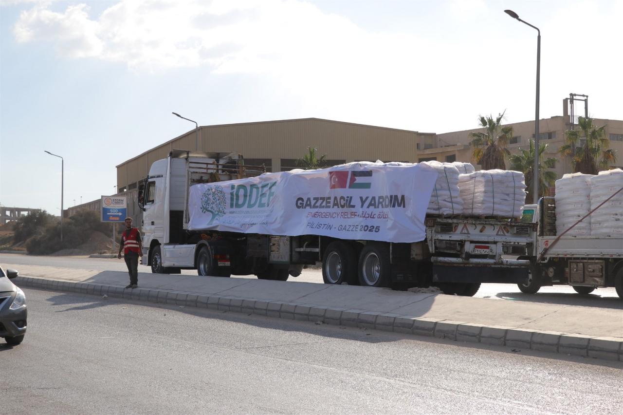 İDDEF'ten yapılan açıklamada, Mısır'ın başkenti Kahire'de bulunan lojistik depoda Gazzeli aileler için tek tek hazırlanan yardım paketlerinin tırlara yüklenerek Refah Sınır Kapısı üzerinden Gazze'ye gönderildiği ifade edildi. Açıklamada, şu ifadelere yer verildi: