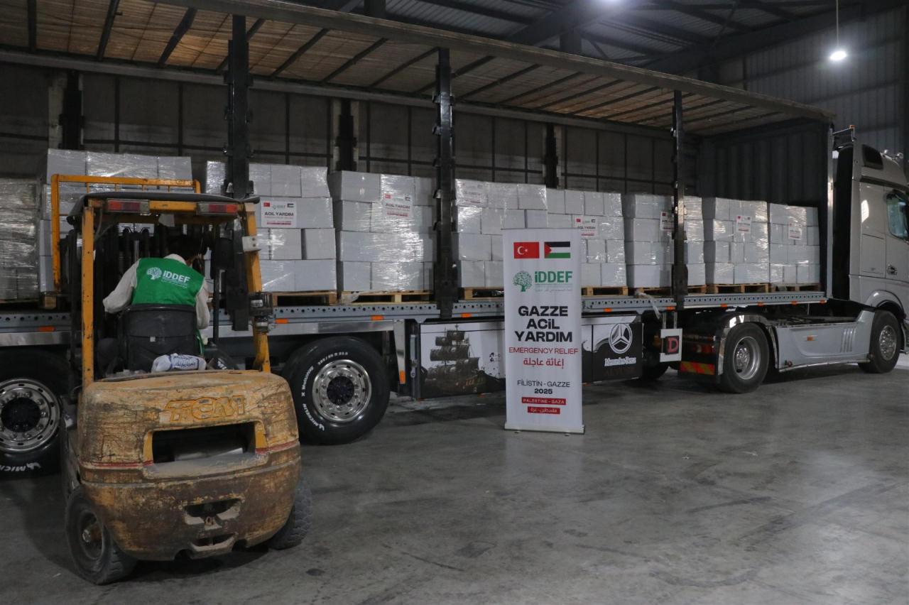 7 Ekim 2023'ten bu yana Gazze'yi hiçbir zaman yalnız bırakmayan İnsana Değer Veren Dernekler Federasyonu (İDDEF), ağırlaşan kış şartlarıyla birlikte bölgedeki insani yardım çalışmalarını daha da yoğunlaştırdı. Her hafta bölgeye tırlar sevk eden İDDEF, son olarak Gazze'deki ailelere ulaştırılmak üzere 8 tır dolusu gıda kolisi, hijyen malzemesi, battaniye ve un gönderdi.