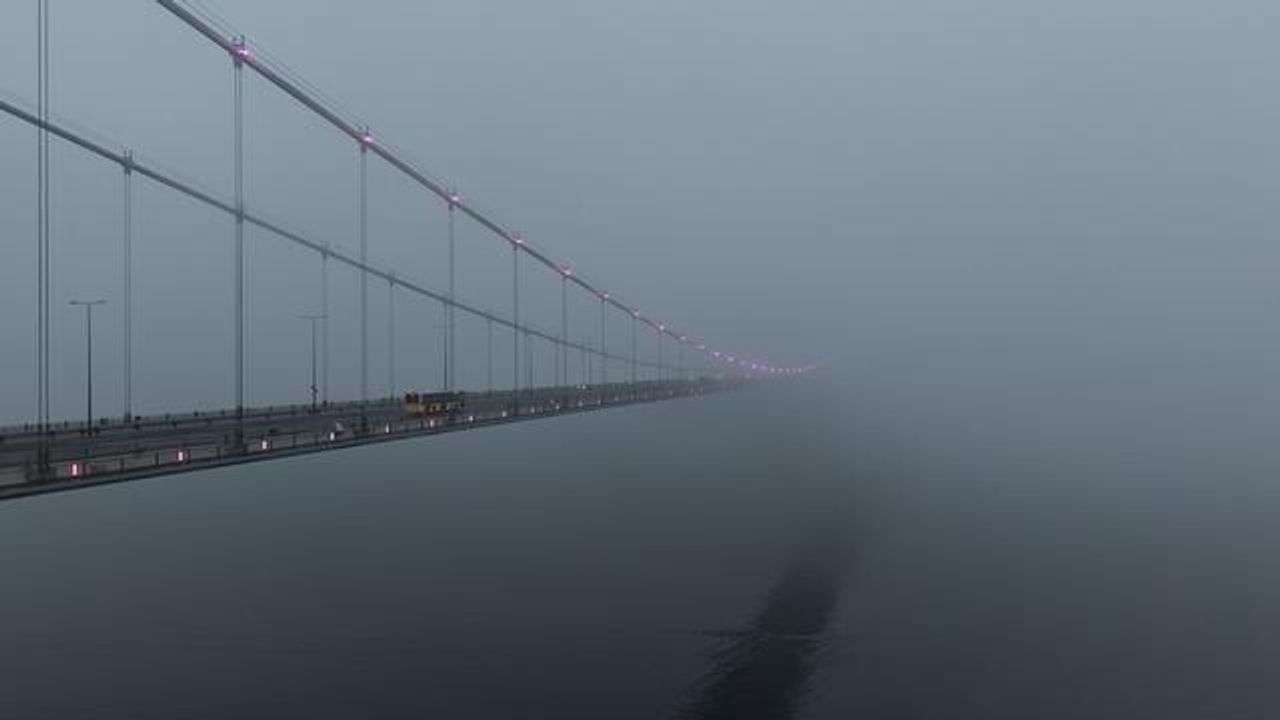 Sis, yüksek kesimlerde daha yoğun hissedilirken ortaya çıkan manzara havadan görüntülendi. Fatih Sultan Mehmet Köprüsü ve çevresi sis tabakasıyla kaplanarak farklı bir görünüm kazandı.