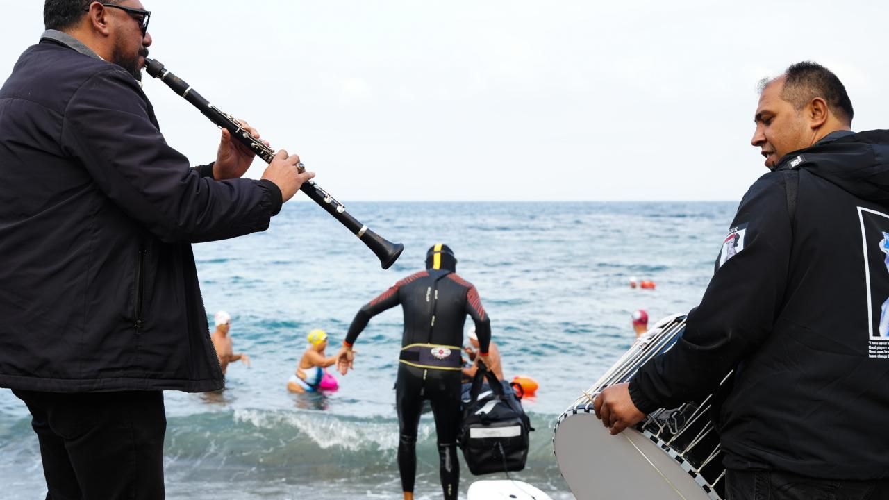 Yüzücüler, İsveçli Tammi'nin Türkiye'den ayrılması dolayısıyla limanda davul zurna eşliğinde uğurlama etkinliği düzenledi.