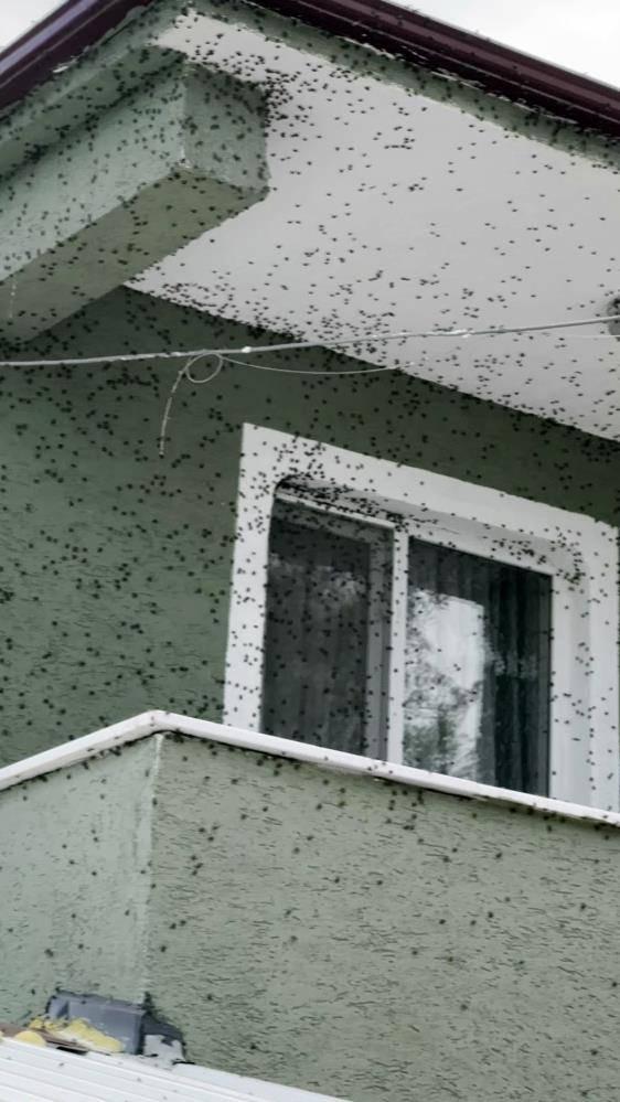 Sakarya'nın Ferizli ve Kaynarca ilçelerinin bazı bölgelerinde adeta istilaya yol açan böcekler, bir binanın dış cephesini ise tamamen sardı.