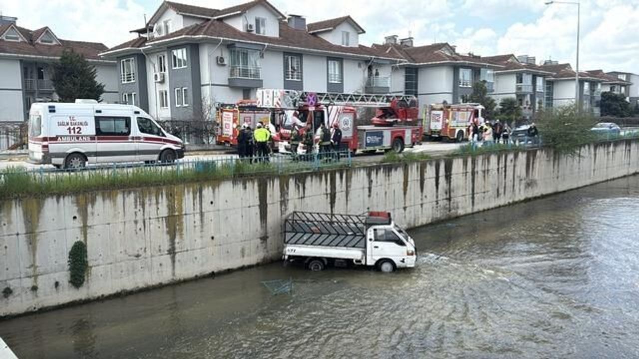 Kazaya ilişkin anlar, çevredeki bir apartmanın güvenlik kamerası tarafından kaydedildi. Görüntülerde kamyonetin demir korkulukları kırarak dereye düştüğü anlar yer alıyor.