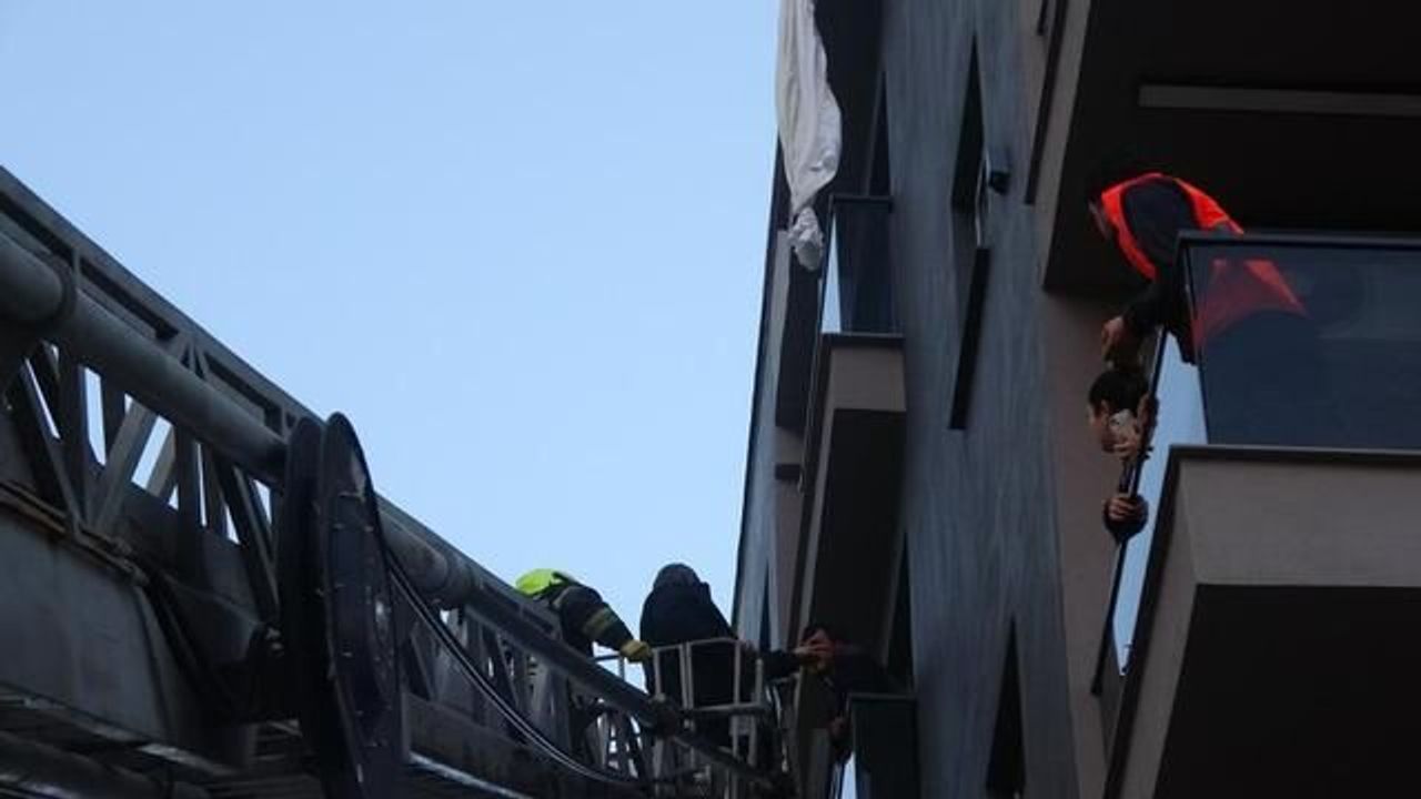 Çevrede sallanan ve birbirine bağlı perdeleri fark eden vatandaşlar durumu 112 Acil Komuta Merkezi'ne bildirdi. İhbar üzerine olay yerine sağlık, itfaiye ve polis ekipleri sevk edildi. İtfaiye ekipleri, araç merdiveni yardımıyla 3. kat balkonuna ulaşarak E.S.'yi aşağı indirdi.
