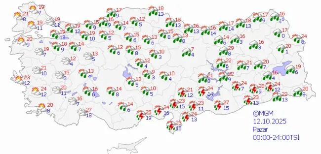 Meteoroloji Genel Müdürlüğü (MGM) verilerine göre, 12 Ekim Pazar gününden itibaren Türkiye'nin doğu ve iç bölgelerinde hava koşulları zorlaşacak.