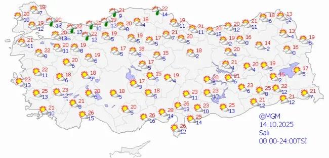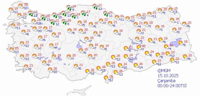 15 Ekim Çarşamba ve 16 Ekim Perşembe günleri, yağışlı alanlar daralarak Doğu Karadeniz ve Doğu Anadolu'nun kuzeydoğu kesimlerine çekiliyor. Türkiye genelinde hava durumu sakinleşirken, özellikle batı ve güney bölgelerde sıcaklıklar artış eğilimine giriyor.