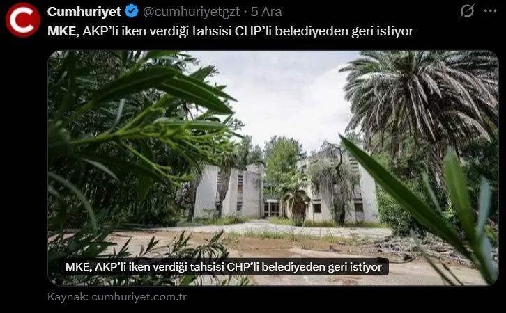'Makine ve Kimya Endüstrisine (MKE) ait Antalya Pil Fabrikası arazisi, millet bahçesi yapılmak üzere 2022 yılında Hazine adına tescil edilmiş ve Çevre, Şehircilik ve İklim Değişikliği Bakanlığı tarafından Kepez Belediyesine tahsis edilmiştir.' ifadesine yer verilen açıklamada, devir protokolünde millet bahçesinin 2 yıl içinde tamamlanması ve MKE'ye devredilen araziye karşılık başka bir arazinin tahsisi şartlarının yer aldığı, bu koşulların 2 yıl içinde sağlanmaması halinde protokolün ve tahsisin geçersiz olacağının hükme bağlandığı kaydedildi.