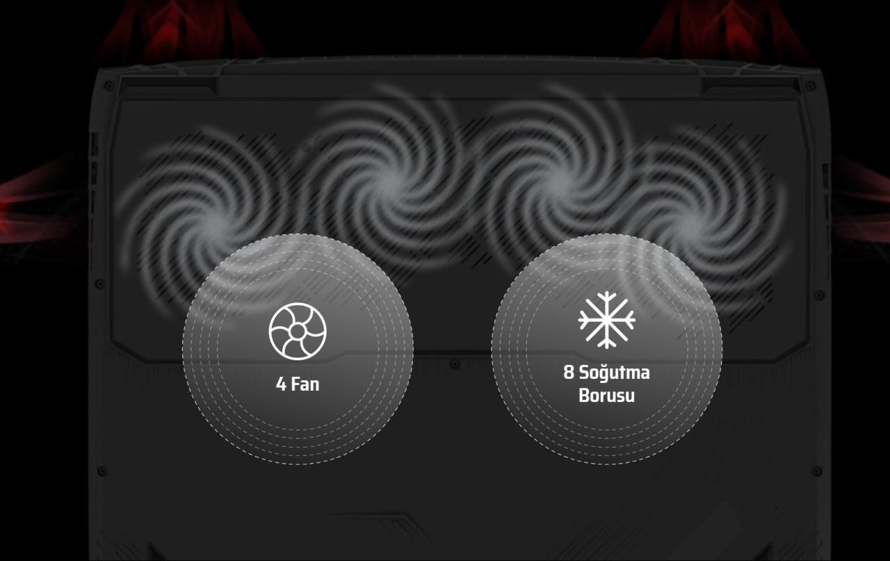 Ayrıca sistemin çift M.2 yuvası sayesinde depolama kapasitesi kolayca artırılabiliyor. Soğutma tarafında 4 fan ve 8 ısı borulu gelişmiş bir sistem yer alıyor; bu da uzun süreli yüksek performanslı çalışmalarda bile sıcaklık değerlerini dengede tutuyor.