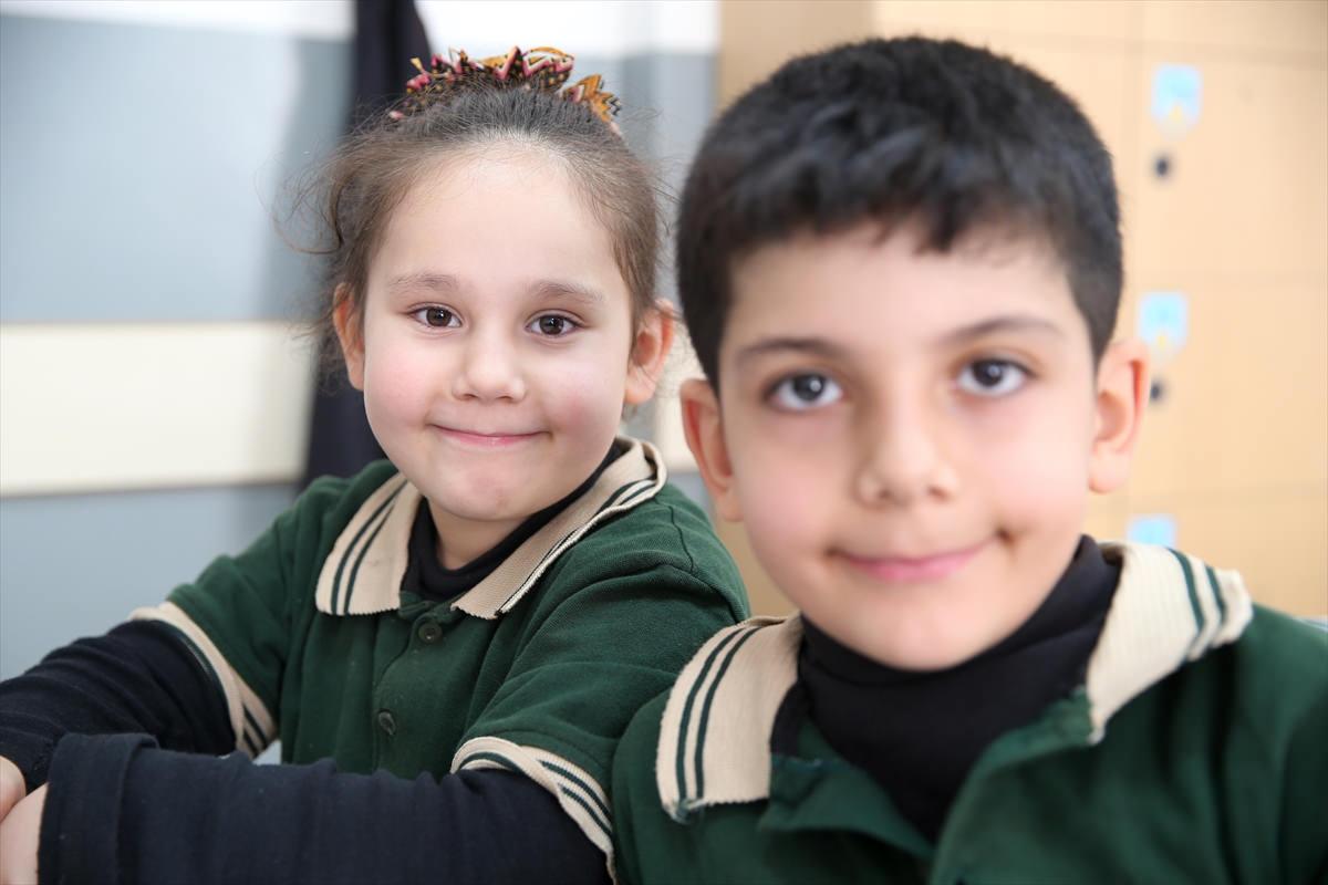 Fiziksel benzerlikleri nedeniyle arkadaşları ve öğretmenlerinin ayırt etmekte zorlandığı ikizler, bu özellikleriyle okula renk katıyor.