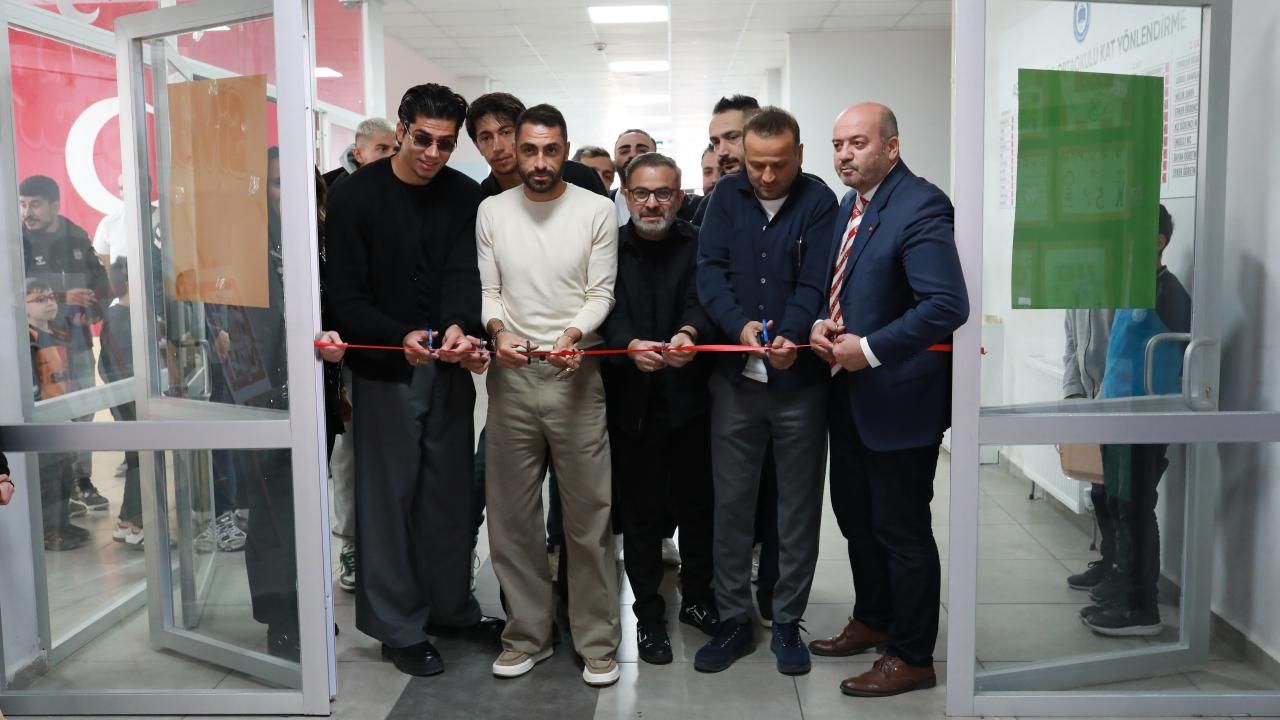 Trendyol 1. Lig ekiplerinden Özbelsan Sivassporlu futbolcular, Aşık Veysel Ortaokulu öğrencileri tarafından hazırlanan resim sergisinin açılışına katıldı.