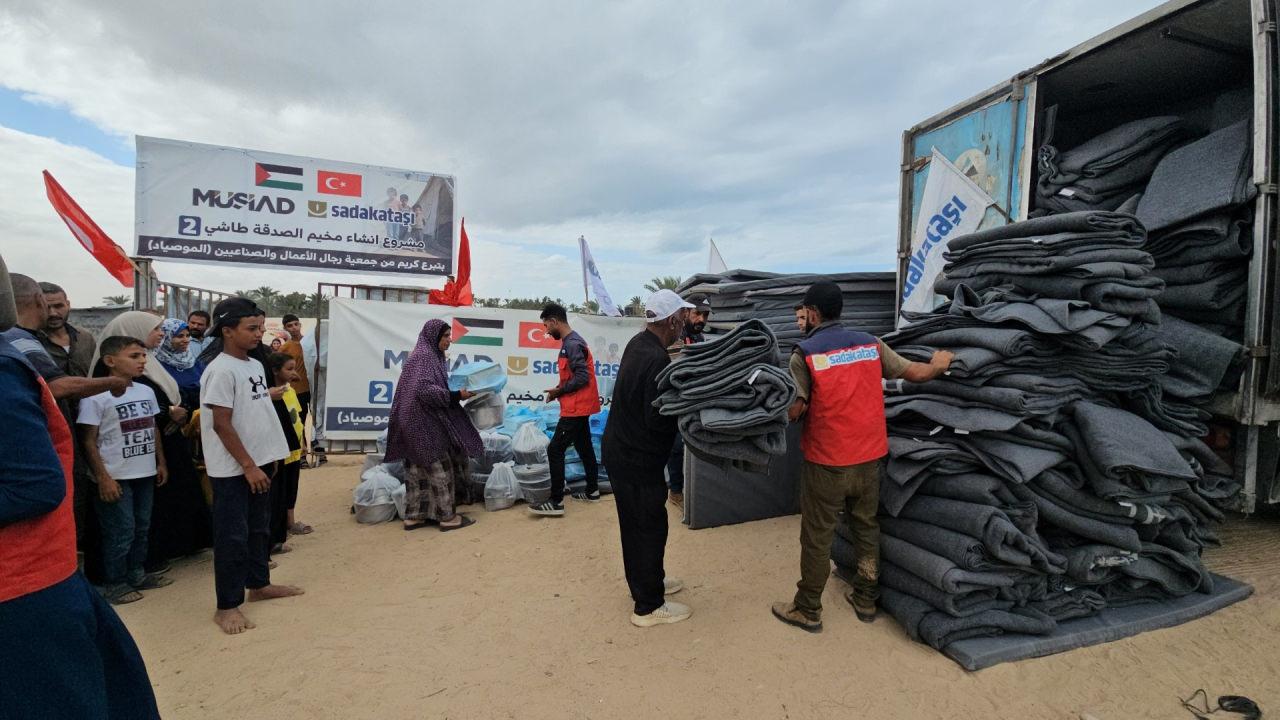 Gazze'de yaşanan barınma sorununun çözümüne katkı sağlamak amacıyla Sadakataşı tarafından projelendirilen, toplamda 125 çadırdan oluşan MÜSİAD Çadır Kenti dualarla açıldı.