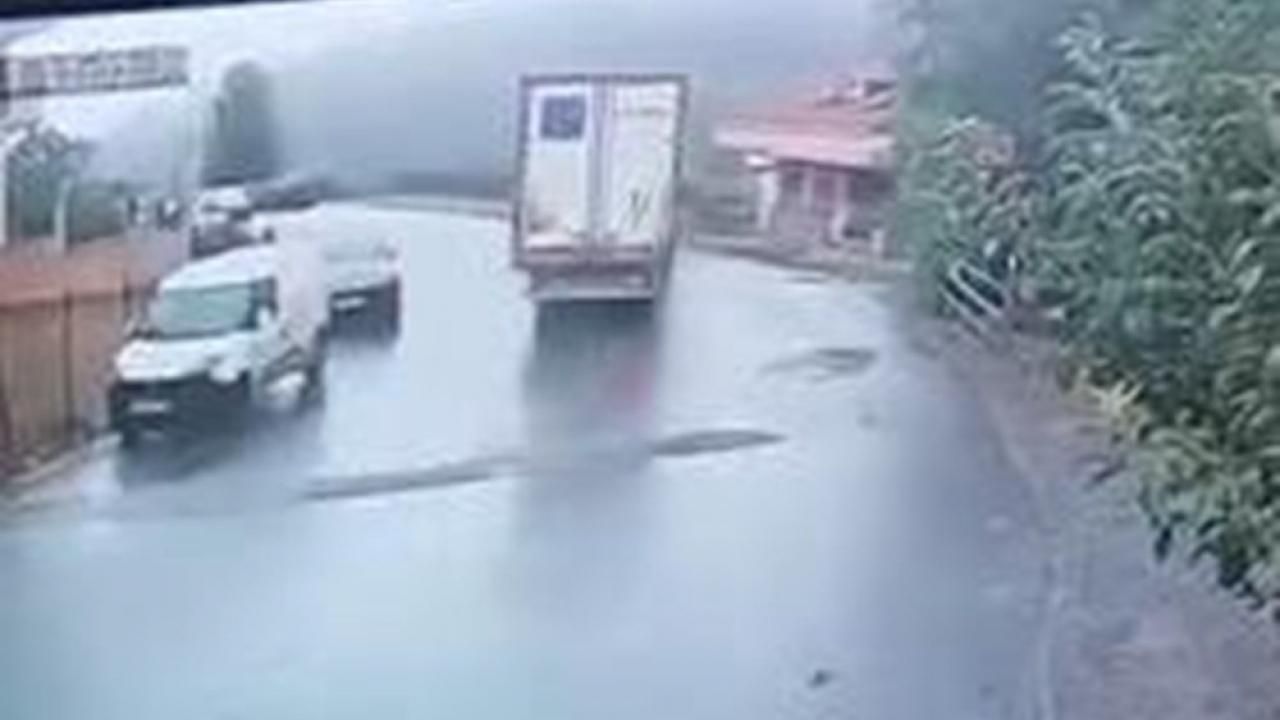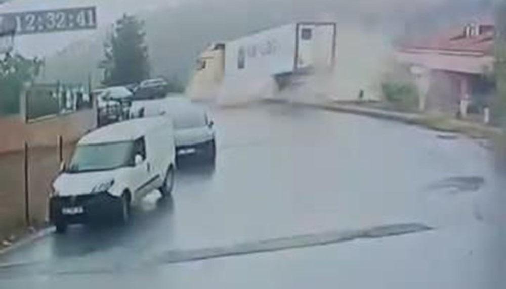 Kazada yaralanan şoför, çevredekilerin de yardımıyla TIR'dan çıkarılarak ambulansla hastaneye götürüldü. Kaza anı ise güvenlik kamerasıyla görüntülendi.