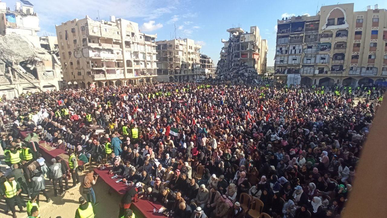 Gazze Şeridi'nde İsrail'in ihlallerine rağmen devam eden ateşkes ile hayat yavaş yavaş normale dönmeye başladı. Han Yunus'taki Hamad Residential City'de enkazlar arasında düzenlenen toplu nikah töreni ile 54 çift savaşın gölgesinde dünya evine girdi. Tören, Birleşik Arap Emirlikleri'nin (BAE) 54. Birlik Günü vesilesiyle BAE'nin İsrail saldırıları nedeniyle Filistin halkı için başlattığı insani yardım operasyonu olan Cesur Şövalye Operasyonu 3 (Operation Gallant Knight 3) kapsamında düzenlendi. Yüzlerce kişinin katıldığı törende, dans gösterisi yapıldı.