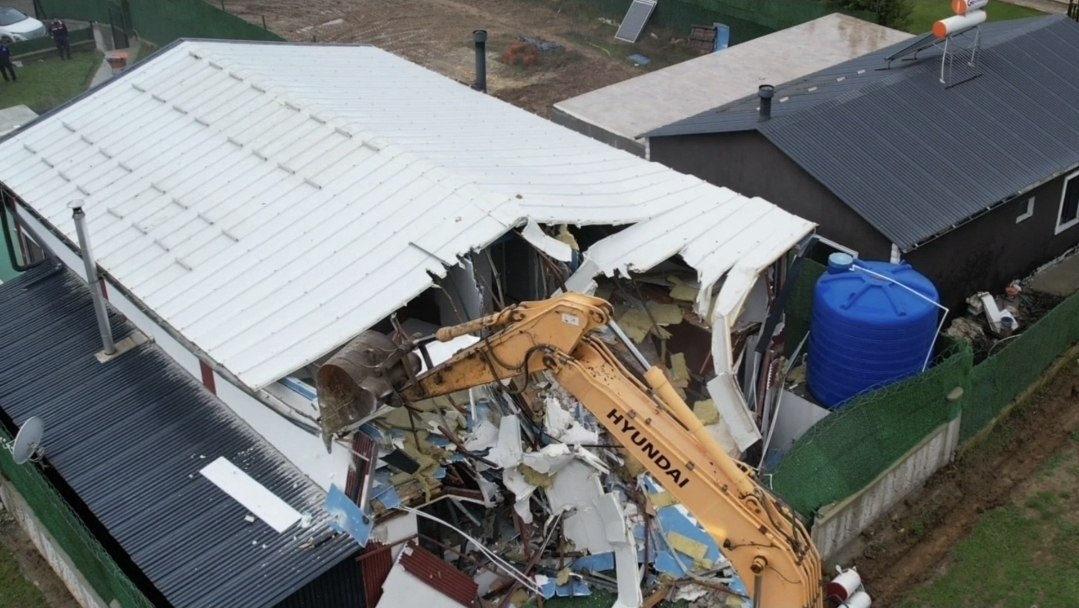 Cinayetin işlendiği villanın kaçak olduğunun belirlenmesi üzerine belediye ekipleri çalışma başlattı. Villada yapılan incelemelerin ardından yıkım kararı çıktı. Dün saat 10.30 sıralarında jandarma ve zabıta eşliğinde olay yerine gelen ekipler, yıkımı gerçekleştirdi. Ayrıca cinayetin işlendiği villanın yanında bulunan ve kaçak olduğu tespit edilen 3 villa daha yıkıldı.