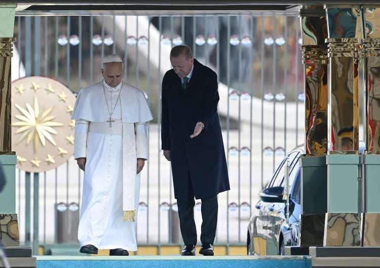 Saygıdeğer Papa 14. Leo'yu ve heyetini ülkemizde misafir etmekten büyük bir memnuniyet duyuyorum. Bir kez de sizlerin huzurunda kıymetli misafirimiz ve heyetine ülkemize hoş geldiniz diyorum. Kendilerinin göreve başladıktan sonra ilk yurt dışı seyahatini Türkiye'ye gerçekleştirmesini her bakımdan çok anlamlı buluyorum. Bu müstesna ziyaretin Türkiye ile Vatikan arasındaki köklü ilişkilerin dostluk, iş birliği ve karşılıklı anlayış temelinde güçlenmesine katkı sağlamasını canı gönülden temenni ediyorum. Başta bu salondan yansıyanlar olmak üzere ziyaret boyunca Türkiye'den verilecek mesajların Türk-İslam dünyasına, tüm Hristiyan coğrafyasına ulaşacağına, dünyada barış umutlarını daha da artıracağına yürekten inanıyorum.