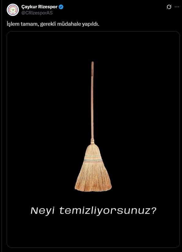 Paylaşımda ise bir süpürge ve 'Neyi temizliyorsunuz?' görseli yer aldı.