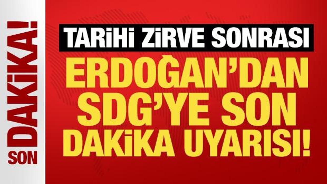 'Sık sık SDG'yi yanlış yollara tevessül etmemesi, Suriye'nin birlik ve bütünlüğüne destek olmaları konusunda da uyarıyoruz.' diyen Erdoğan, 'Umarız Suriye'nin toprak bütünlüğü bir ve beraber, müreffeh geleceğe ulaşmaları yolunda tutum takınırlar. SDG'nin Suriye ile bütünleşmesinin en kısa zamanda gerçekleşmesi, Suriye'nin kalkınma hamlelerini de hızlandıracaktır.' ifadelerini kullandı.