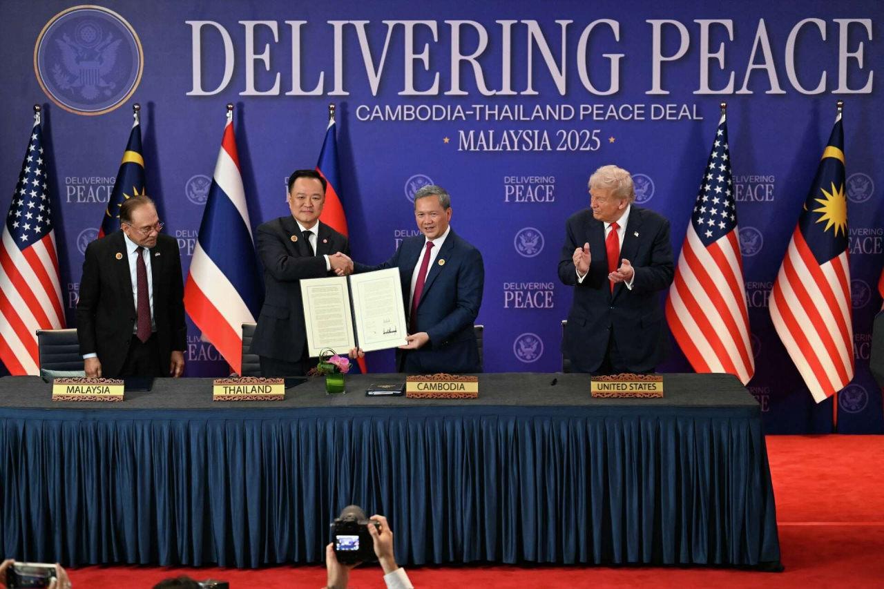 ABD Başkanı Donald Trump, Asya seyahatinin ilk ayağı olan Malezya'da, Kamboçya ile Tayland arasındaki askeri anlaşmazlıkları sona erdirmeyi amaçlayan barış zirvesine katıldı. Malezya Başbakanı Enver İbrahim, Tayland Başbakanı Anutin Charnvirakul ve Kamboçya Başbakanı Hun Manet'in hazır bulunduğu zirvede Kamboçya ile Tayland arasında ortak ateşkes anlaşması imzaladı. Zirvede söz alan Trump, Tayland Kralı Vajiralongkorn'un annesi Kraliçe Sirikit'in vefatı nedeniyle başsağlığı dileyerek konuşmasına başladı. ABD Başkanı, Tayland ve Kamboçya arasındaki 'tarihi' anlaşmada oynadığı rol için Malezya Başbakanı İbrahim'e de teşekkür etti. Barışa vesile olacak bu zirvenin 'çok heyecan verici' olduğunu ve milyonlarca insanın hayatını kurtaracağını söyleyen Trump, 'Bu, Kamboçya ile Tayland arasındaki askeri çatışmayı sona erdirecek tarihi bir anlaşmayı imzalarken, Güneydoğu Asya halklarının tamamı için çok önemli bir gün. Amerika Birleşik Devletleri adına, bu çatışmanın çözülmesine yardımcı olmaktan ve gururlu, bağımsız ulusların güvenlik, emniyet ve barış içinde refah içinde gelişebileceği bir bölgesel gelecek inşa etmekten gurur duyuyorum.' dedi.