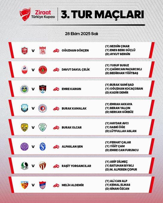 3. Tur maçları ve karşılaşmaları yönetecek hakemler şu şekilde: