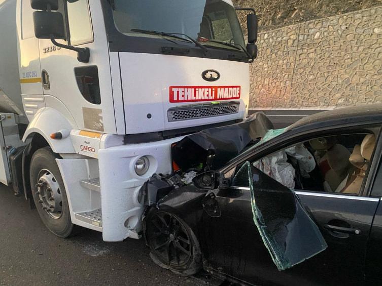 YAKIT TANKERİ, KARŞI YANDAN GELEN OTOMOBİL KAFA KAFAYA ÇARPIŞTI